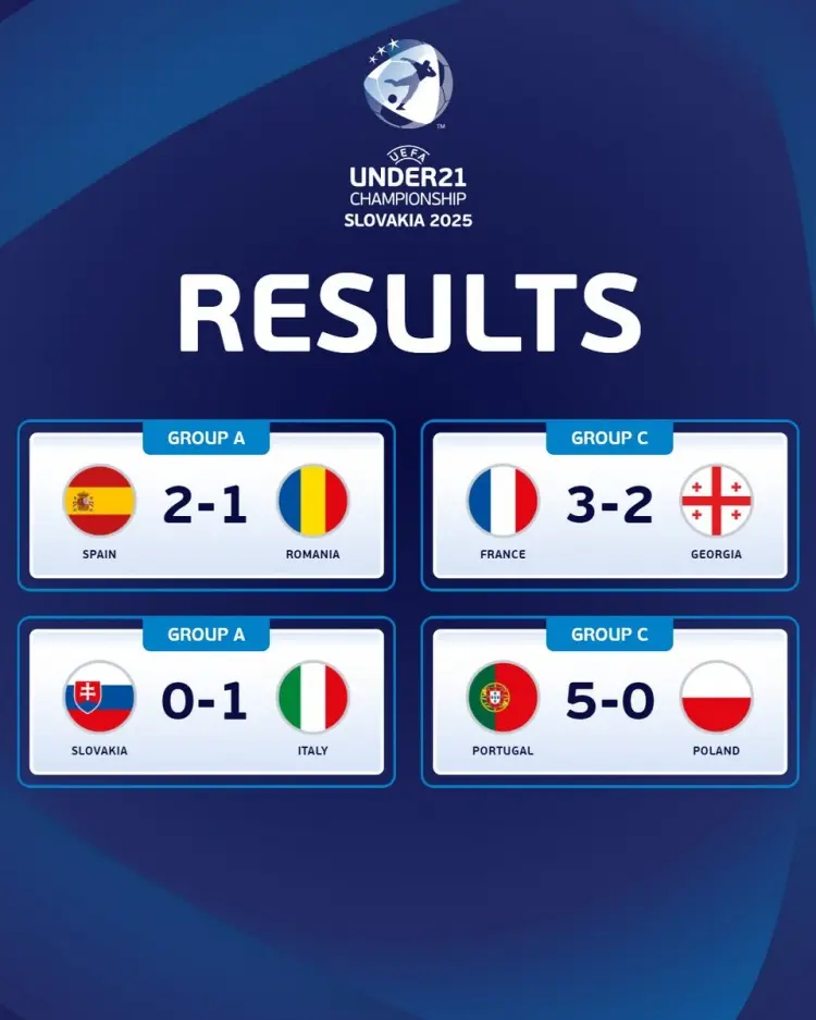 本组西班牙U21、意大利U21均2胜积6分提前出线,斯洛伐克U21、罗马尼亚U21列三四名,两队均0分。